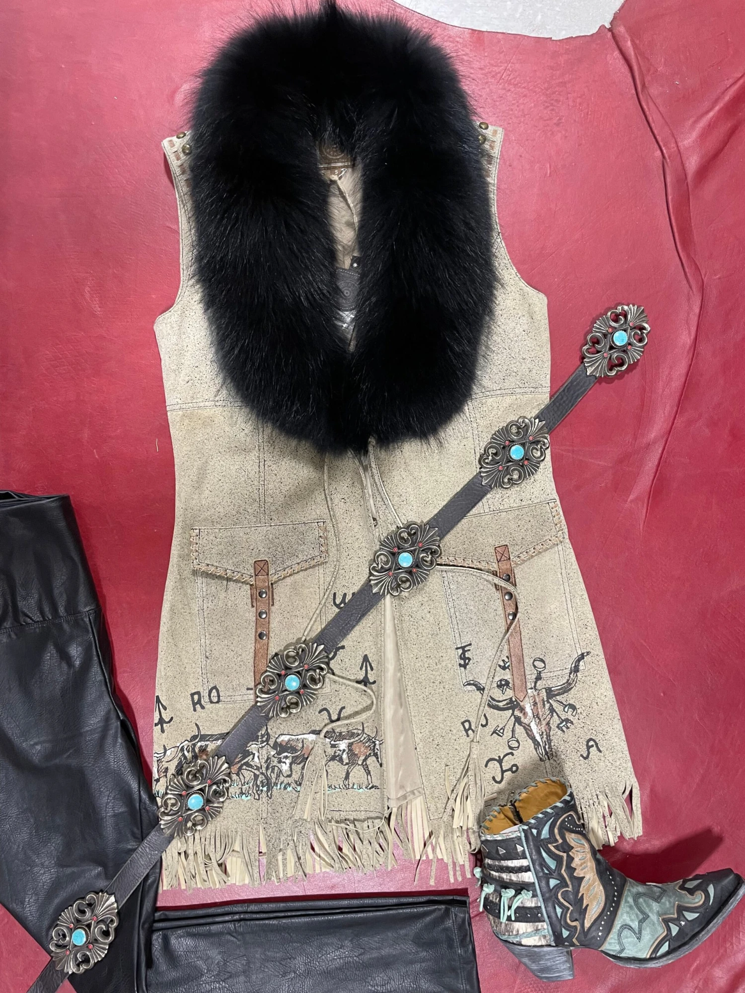 Our Western Heritage leather belt is a MUST HAVE! We love the turquoise and red stone detail! **Statement belt for sure!**