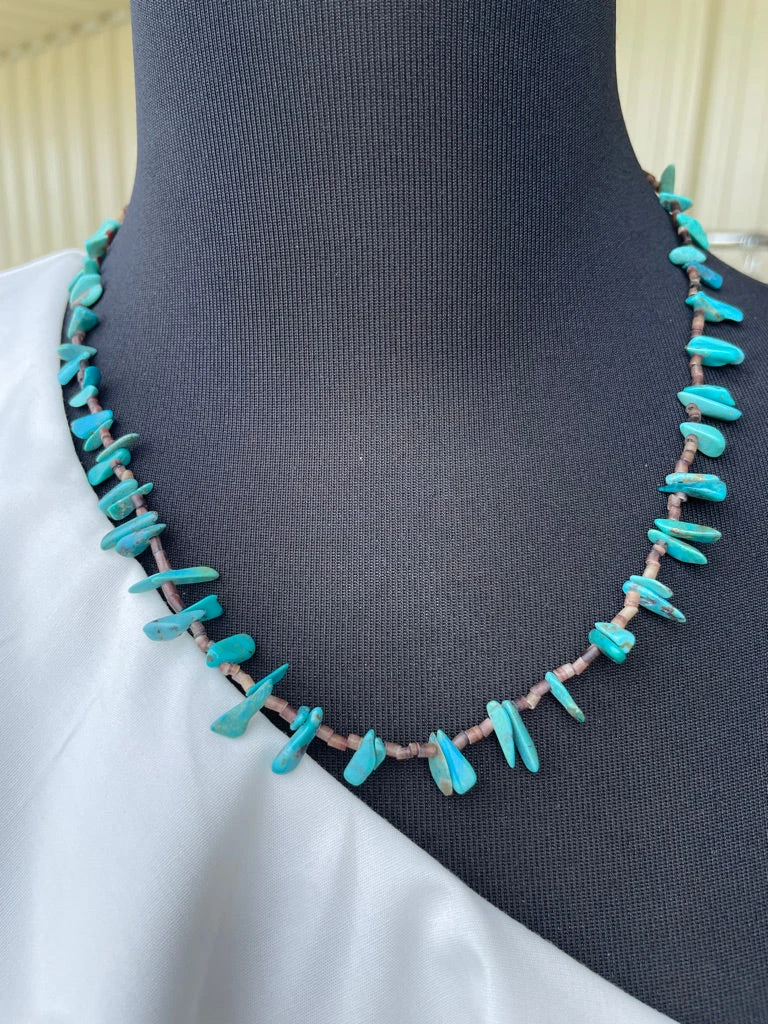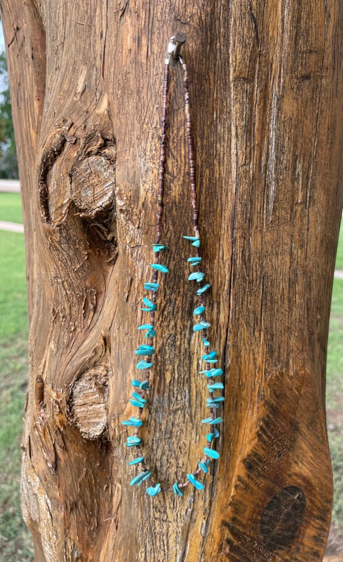 The Lola Turquoise and Brown Necklace is FIRE! We love the chippy turquoise stone and brown combination!Β