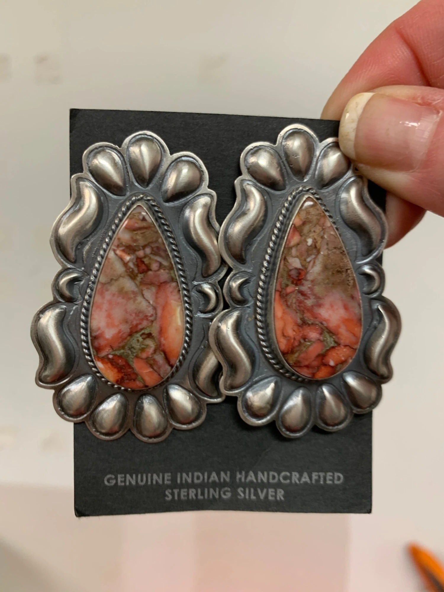 We love the fact that these stones seem to change colors along with your wardrobe. It will pull reds, pinks & mauve colors depending upon the clothing you place under this incredible set.